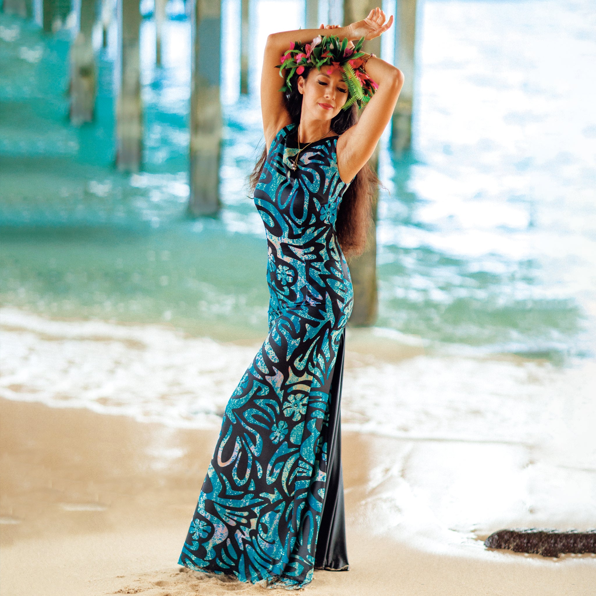 【サンプルドレス】(04)ストレッチステージドレス(トライバルパシフィック)
