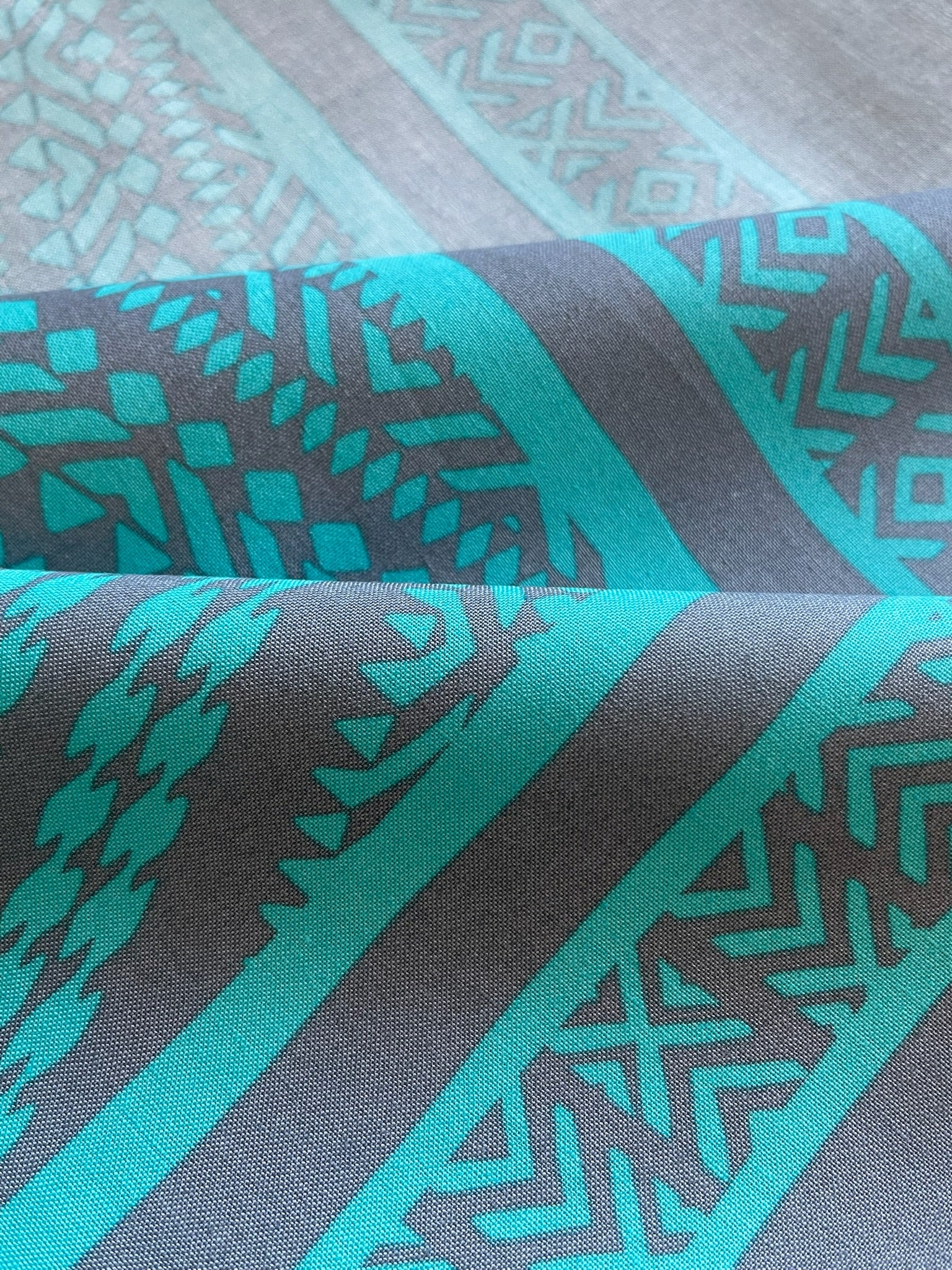 【限定販売】4ヤード ファブリック|ノスタルジックトライバル(グレー / ターコイズブルー)